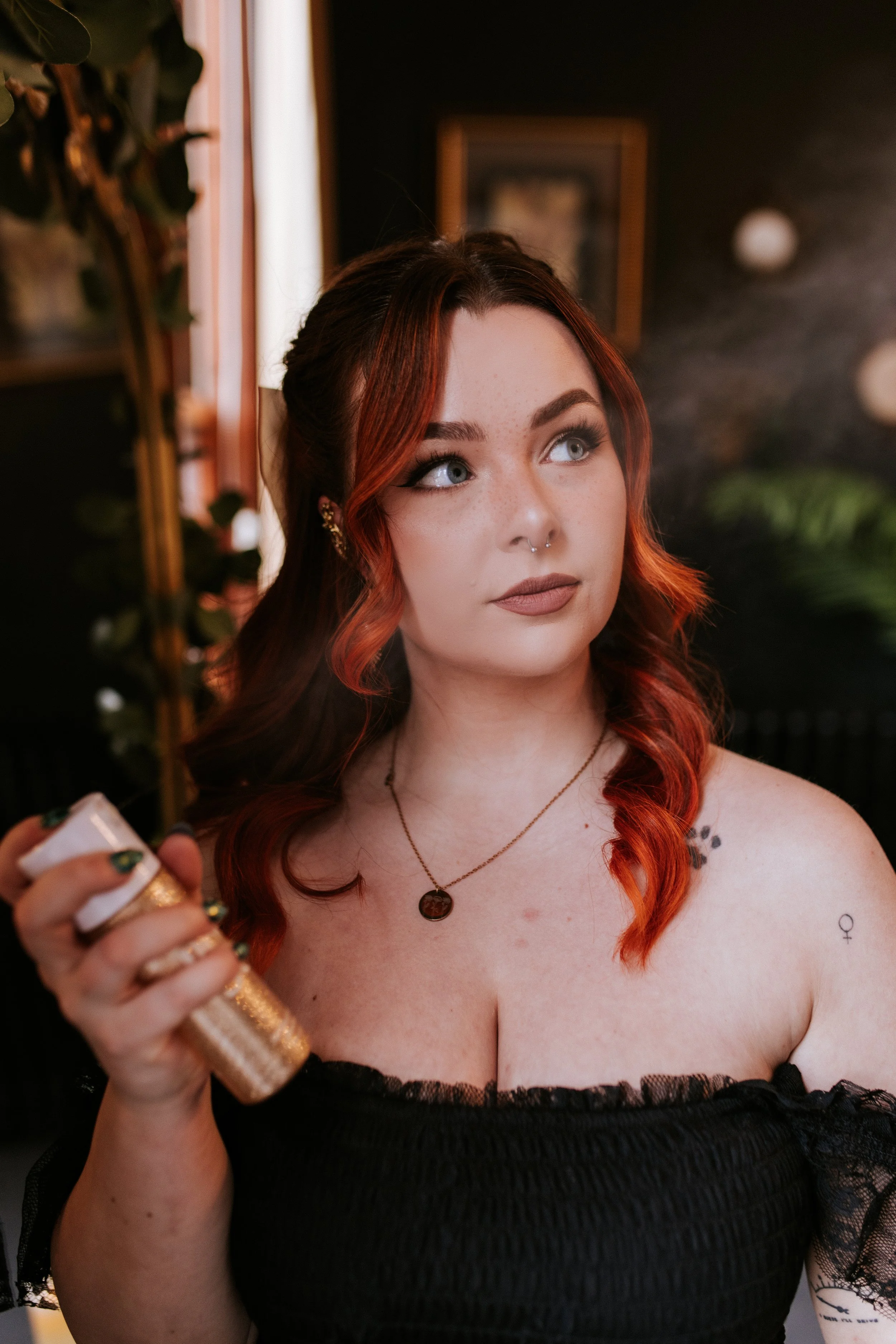 “Makeup isn’t just a profession for me; it’s a spell, a transformative experience, a way to make you feel as magical as you truly are. Whether you’re dreaming of a soft, glowing wedding look or a bold, ethereal glam fit for a queen, I am here to make it happen. I firmly believe that beauty comes in all forms, and I am proud to be an inclusive artist, having worked with individuals from all races, ethnicities, ages, backgrounds, and gender identities. I also aim to create a calming, relaxing space for all my neurodivergent friends, ensuring that everyone feels comfortable and welcomed. There is no one-size-fits-all beauty, and that’s what I’m here to celebrate. Authenticity is everything, and I’m all about making you feel seen and like the realest version of yourself (maybe with just a little more sparkle!)